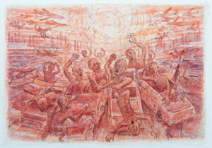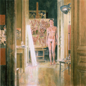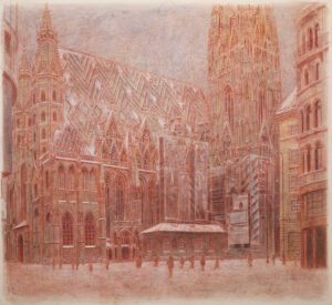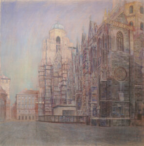 Gemälde Figuren 1973-2021 Bildnis Isolde K. 1975, 195 x 200 cm. Aquarell auf Leinwand Zwei Personen, 1979, 195 x 200 cm. Aquarell auf Papier Interieur mit Baum, 1980, 66 x 95cm. Aquarell auf Leinwand Akt im Interieur, 1981, 180 x 195 cm. Gouache auf Papier Durchblick, 1982, 34 x 42 cm. Aquarell auf Leinwand Durchblick zum Jugendstilschreibtisch, 1983, 33cm x 45 cm. Gouache auf Papier Schlafzimmer, 1984, 34 x 45 cm. Gouache auf Papier Thomas im Atelier, 2003, 110 x 110 cm. Öl auf Leinwand Interieur mit de Sade, 2004, 115 x 115 cm. Acryl auf Leinwand Liegende (Purpur), 2014, 115 x 115 cm.Acryl auf Molino Akt auf rotem Tuch, 2016, 125 x 125 cm. Acryl auf Molino Frauenkopf, 2016, 48 x60 cm. Acryl auf Karton Elefanten, 2016, 105 x 105 cm. Acryl auf Molino Zwei Akte (Hommage a Gustave Moureau), 2017, 130 x 145 cm. Acryl auf Molino Studie zum „Bösen im Kosmos“ VI, 2018, 105 x 105 cm. Acryl auf Molino, Das Böse im Kosmos I, 2018, 130 x 160 cm. Acryl auf Molino Frauenkopf II, 2019,540 x 67 cm. Acryl auf Karton Zwei Liegende (Isfahan), 2019, 130 x 130 cm.Acryl auf Molino Im Fegefeuer, das schreckliche Kopfkratzen, 2019, 46 x 61 cm. Terror, 2020, 35 x 40 cm. Acryl auf Molino Apocalypse III, 2020, 70 x 100 cm. Acryl auf Karton, Zwei Frauenköpfe, 2020,670 x 80 cm. Acryl auf Karton Der Sturz der Elefanten ins Fegefeuer, 2021, 70 x 100 cm. Acryl auf Karton Landschaft 1973-2021 Herbstgarten, 1987, 140x 190 cm. Öl auf Leinwand Lobau im Winter, 1987, 80 x 105 cm. Öl auf Leinwand Urlandschaft Blau, 1994, 170 x 170 cm. Öl auf Karton In Afrika, 1995, 41 x 51 cm. Öl auf Leinwand Roter Garten, 1996, 26 x 30 cm. Öl auf grundiertem Papier Herde, 1996, 115 x 135 cm. Öl Leinwand Mammute und Vögel im Permafrost Sibiriens, 1998, 160 x 160 cm. Öl auf grundierter Leinwand Aulandschaft bei Rossatz in der Wachau, 2003, 135 x 140 cm. Öl auf Leinwand Garten in Klosterneuburg 2003, 150 x 160 cm. Öl auf Leinwand Roter Wald, 2004, 42 x 47 cm. Öl auf grundiertem Karton Der Erzberg, Urgeschichte, Steiermark, 2007, 125x 140 cm. Öl auf Leinwand Aulandschaft bei Rossatz in der Wachau im Herbst, 2012-15, 140 x 150 cm. Garten in Klosterneuburg III, 2015, 125 x 125 cm. Acryl auf Molino Schilflandschaft an der Panozzalacke in der Lobau, 2015, 135 x 150 cm Acryl auf Molino Schilf in der Lobau im Abendlicht, 2017, 130 x 130 cm. Acryl auf Molino Urwaldszene, 2018, 125 x 125 cm. Acryl auf Molino In der Lobau im Winter, 2018, 140 x 140 cm. Acryl auf Molino Landschaft im Weinviertel, 2018, 48 x 68 cm. Acryl auf grundiertem Karton Blick über die Weingärten bei Rossatz zum Vogelberg und zur Ruine Dürnstein auf der anderen Seite der Donau II, 2019, 115 x 140 cm. Acryl auf Molino Der Blick über die Weingärten bei Rossatz, 2019, 70 x 100 cm., Acryl auf Karton Herbstliche Natur in der Donauau bei Rossatz, rechts die Ruine Dürnstein, 2020, 150 x 175 cm, Acryl auf Molino Der Weg durch die herbstlichen Obstgärten von Rossatz nach Rossatzbach, 2020, 70 x 100 cm., Acryl auf Karton Herbst an der Panozzalake in der Lobau, 2021, 105 x 130 cm. Acryl auf Molino Der Großvenediger, 2021, 105 x 120 cm. Acryl auf Molino Straßenszenen 1973-2019 Atombombe II, 1973, 150 x 160 cm. Aquarell auf Leinwand Atombombe IV, 1975, 180 x 160 cm. Aquarell auf Leinwand Josefstädter Straße, 2003, 90 x 90 cm. Öl auf Leinwand Stephansdom Wien, 2005 Stephansdom II, 2005, 150 x 150 cm. Acryl auf Leinwand Lerchenfelder Gürtel II, 2016, 95 x 115 cm. Acryl auf Molino Stephansdom III, 2018, 140 x 140 cm. Acryl auf Molino Josefstädter Straße III, 2019, 125 x 125 cm. Acryl auf Molino Stephansdom IV, 2019, 150 x 165 cm. Acryl auf Molino